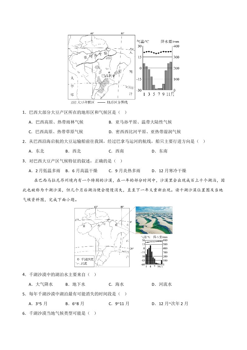 七下地理 10.2巴西(填图速记)-(人教版)(含答案)QXDLRJ-0065