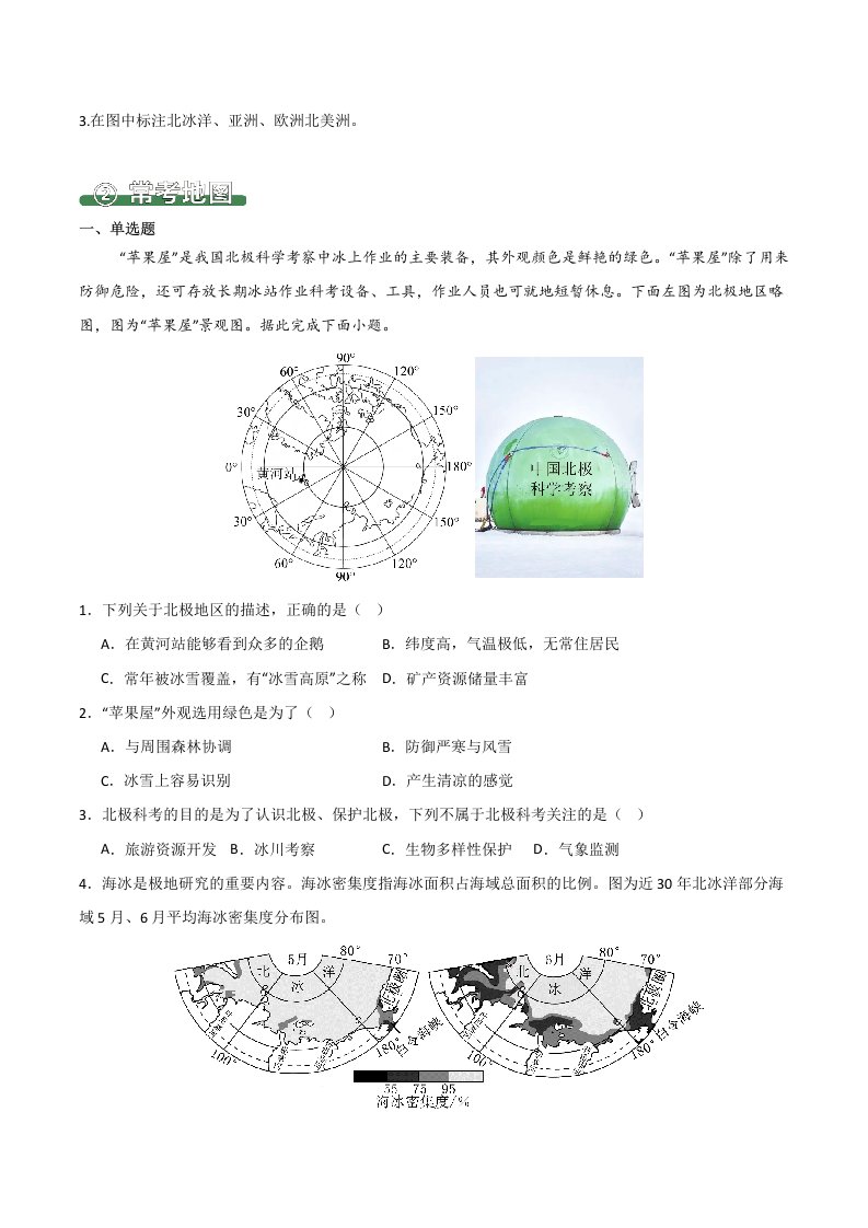 七下地理 11.0极地地区(填图速记)-(人教版)(含答案)QXDLRJ-0067