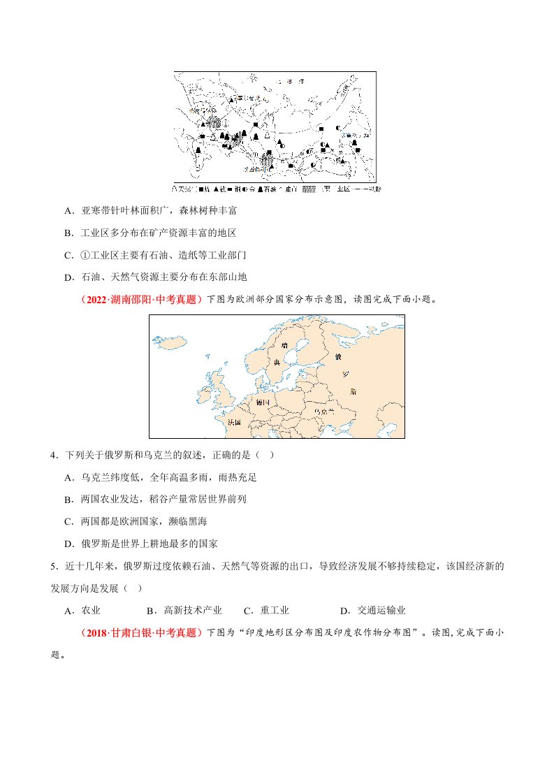 七下地理 第八章 我们邻近的国家和地区(含答案)QXDLRJ-0055