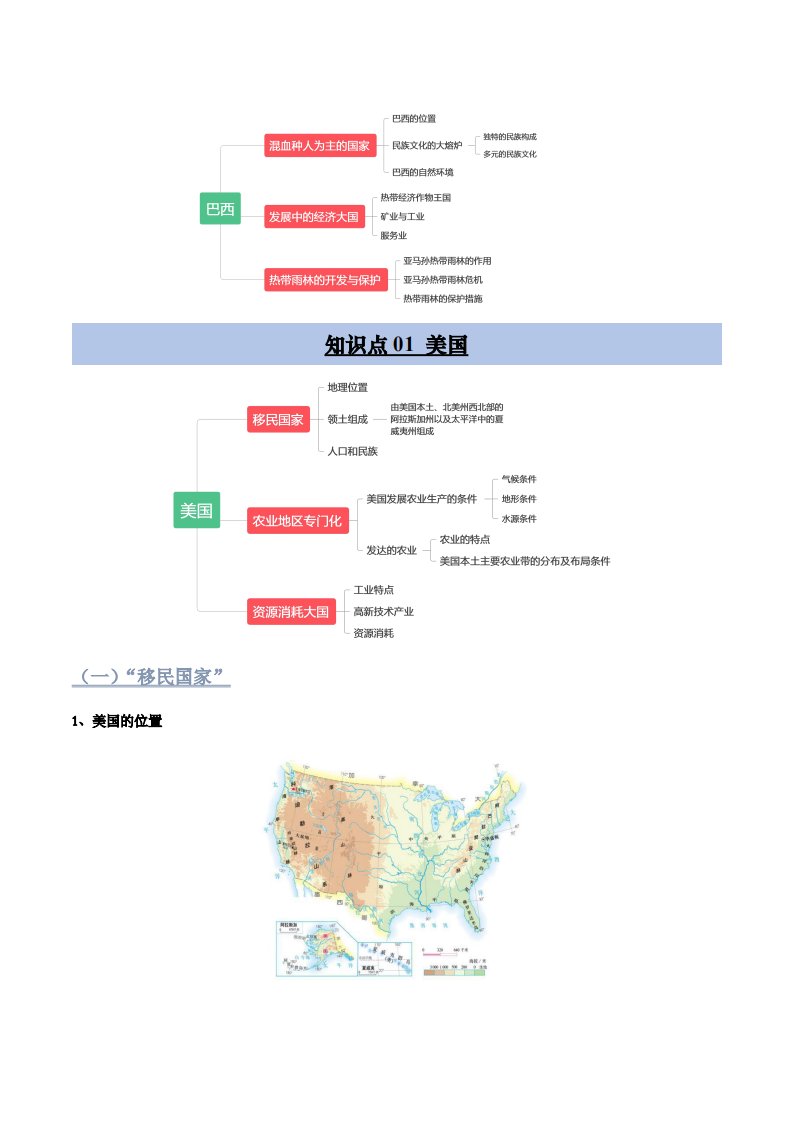 > 七下地理 第十章 西半球的国家(知识清单)(含答案)QXDLRJ-0021