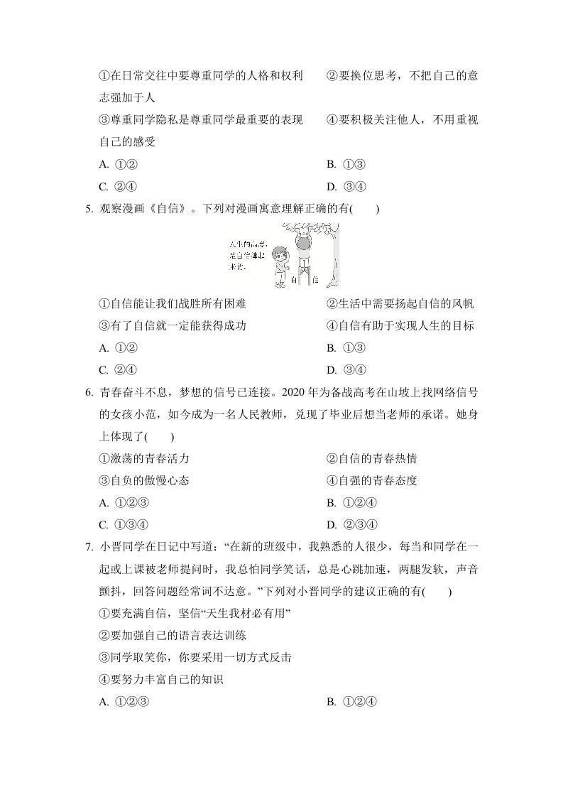 七下道法 第二单元学情评估(含答案)QXDFBB-0115