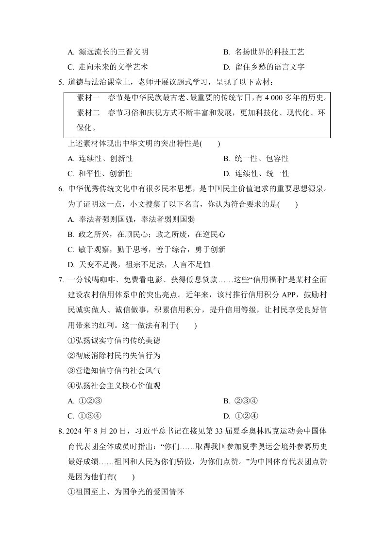 七下道法 第三单元学情评估(含答案)QXDFBB-0114