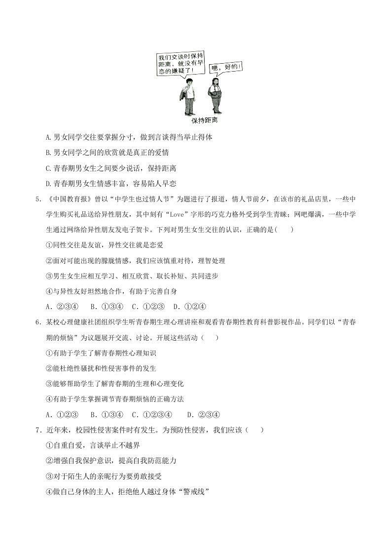 七年级下学期道德与法治期中考试模拟卷(一)(含答案)QXDFBB-0121