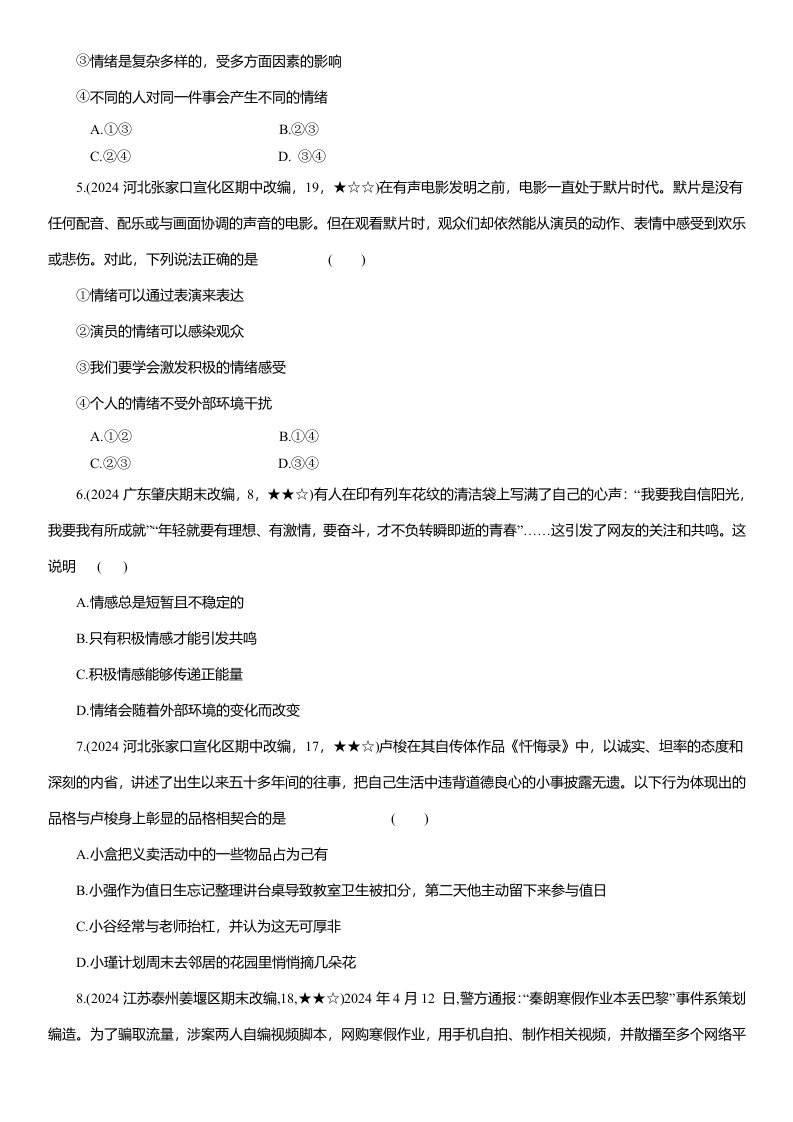 > 七年级下册道德与法治期末测试卷(一) (含答案)QXDFBB-0133