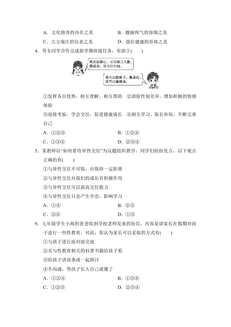 > 七下道法 第一单元学情评估(含答案)QXDFBB-0099