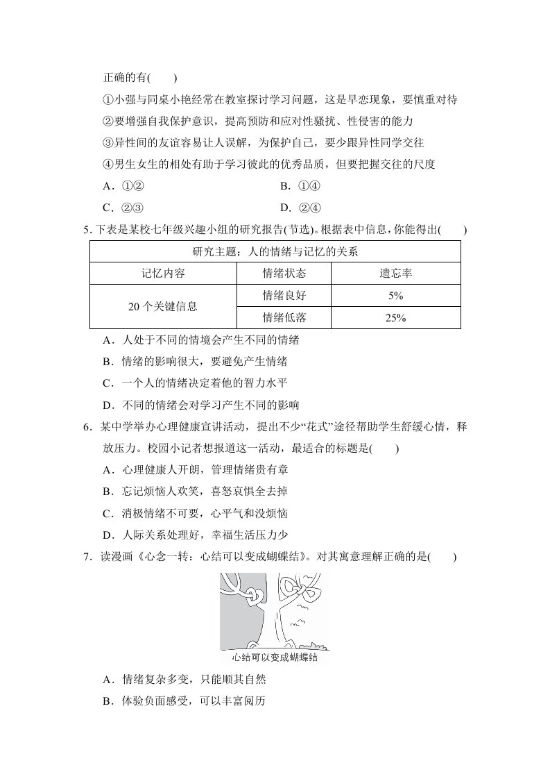 七下道法 第二单元学情评估(含答案)QXDFBB-0101