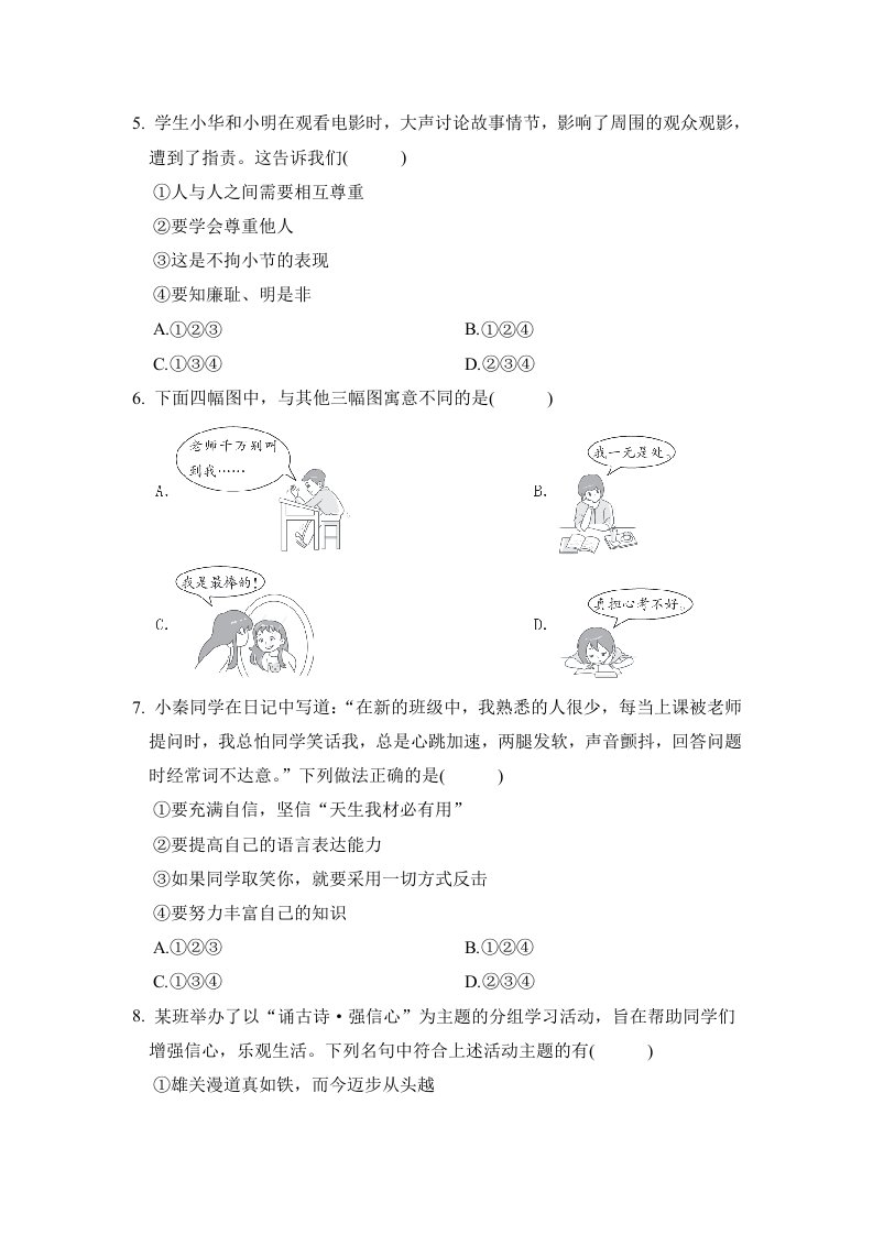 七下道法 期中学情评估卷(含答案)QXDFBB-0090