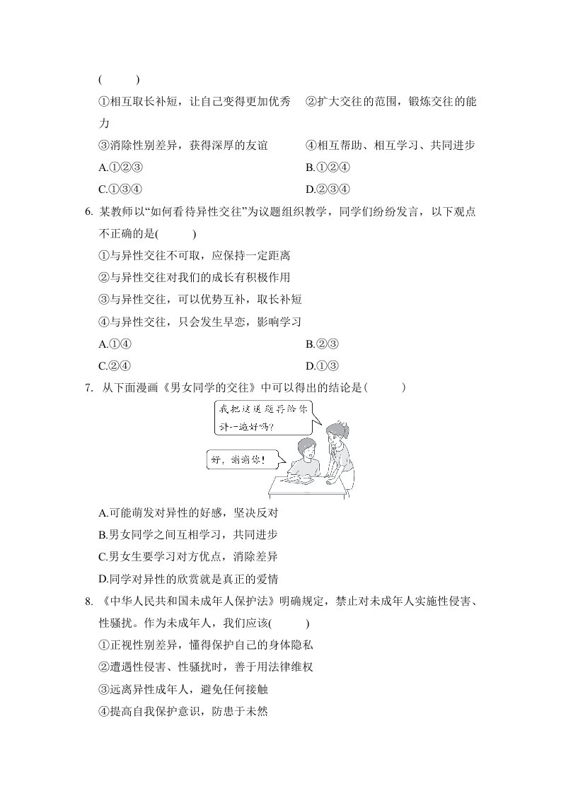 > 七下道法 第一单元学情评估卷(含答案)QXDFBB-0106