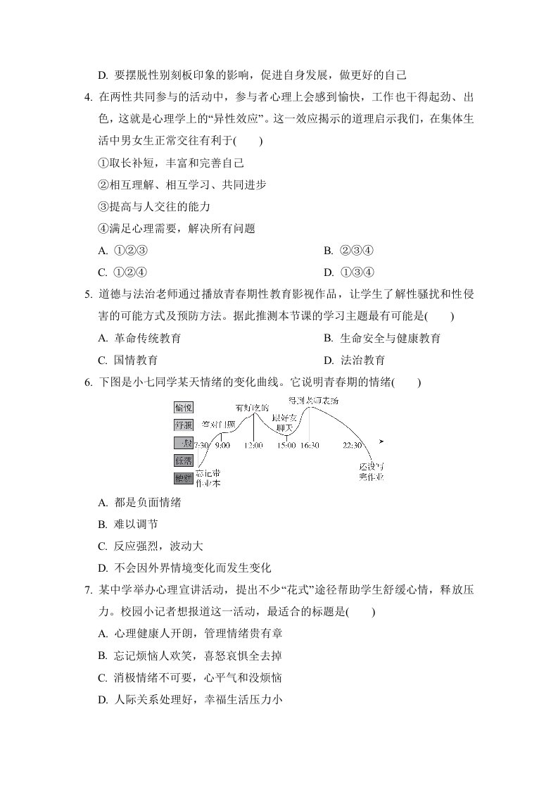 > 七下道法 期中学情评估(含答案)QXDFBB-0111
