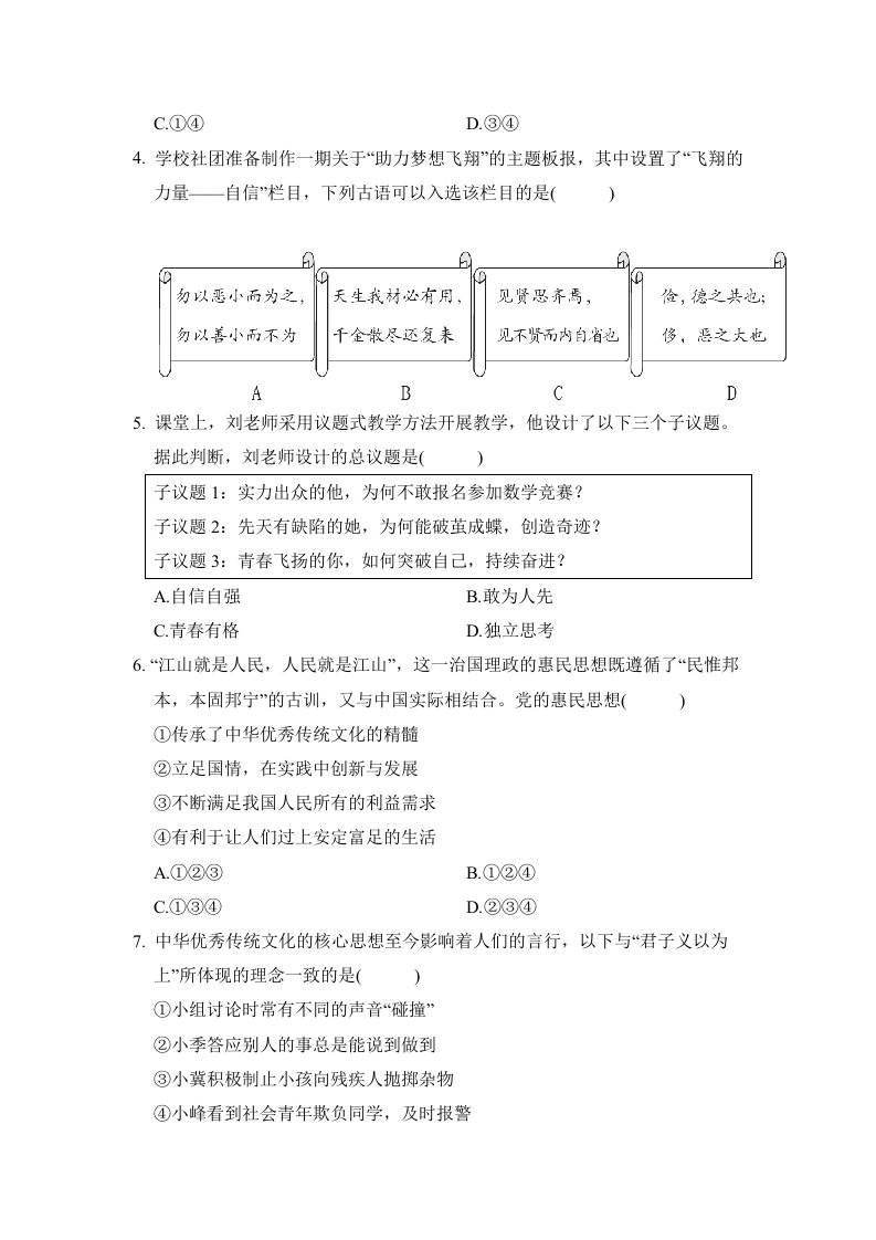 七下道法 第四单元学情评估(含答案)QXDFBB-0102