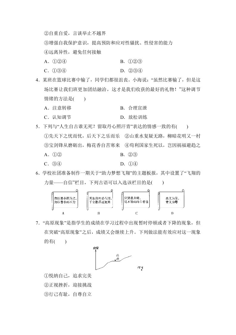 七下道法 第二单元学情评估(含答案)QXDFBB-0101