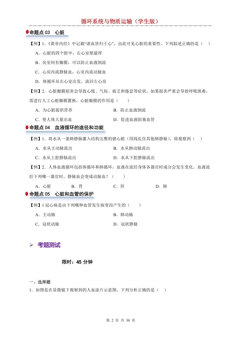 七年级下冀少 生物【专项练习】专题02 循环系统与物质运输QXSWJS-0232