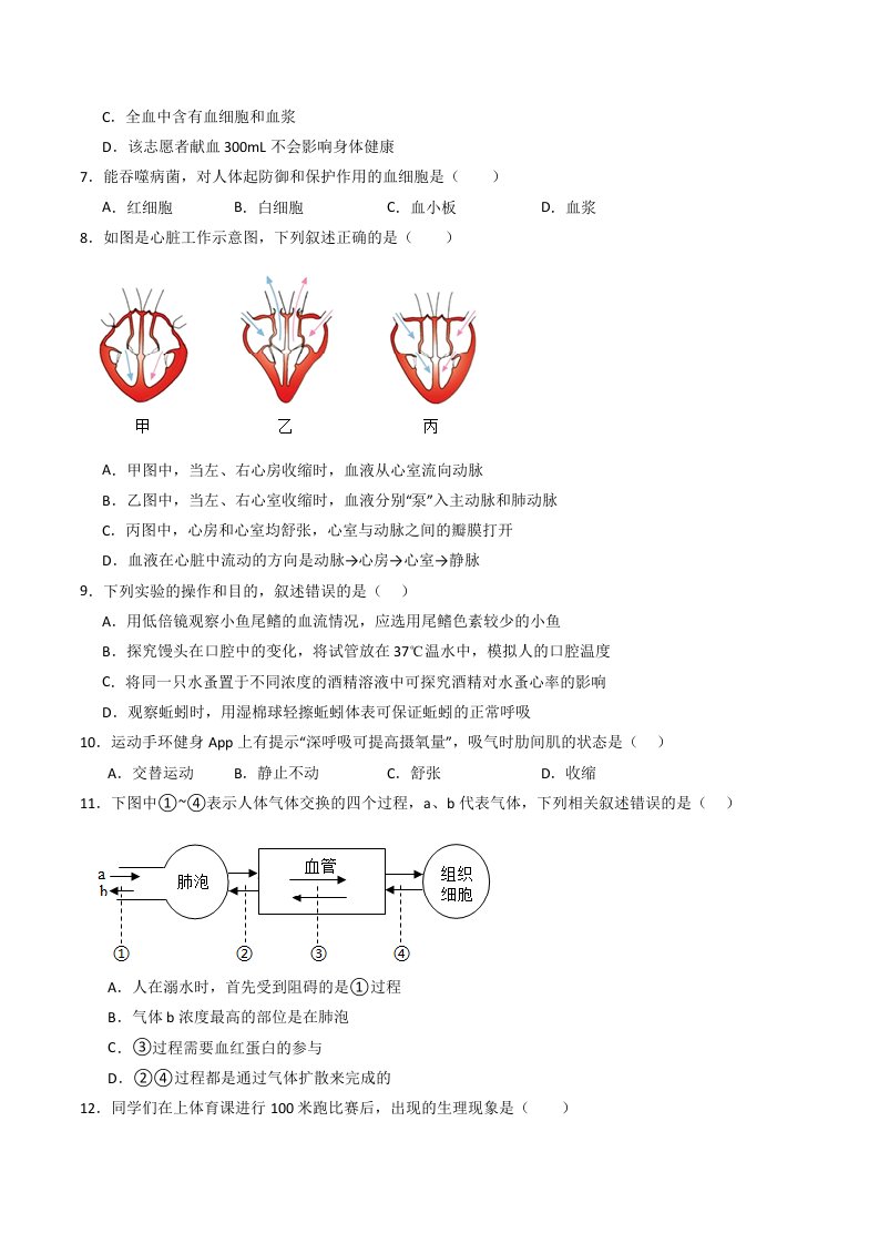 七年级下冀少 生物期末考前冲刺卷(学生版)QXSWJS-0191