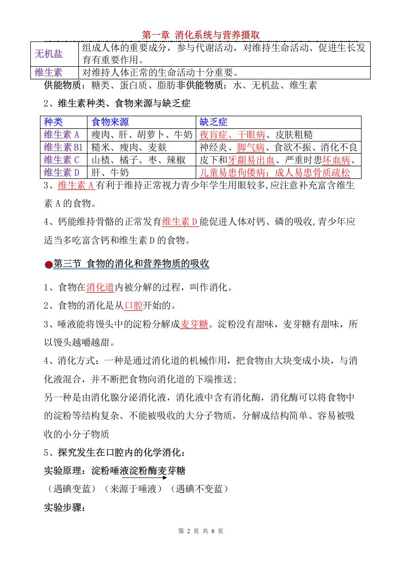 七年级下 生物03-【冀少版】七年级下册期中复习知识点汇总QXSWJS-0234