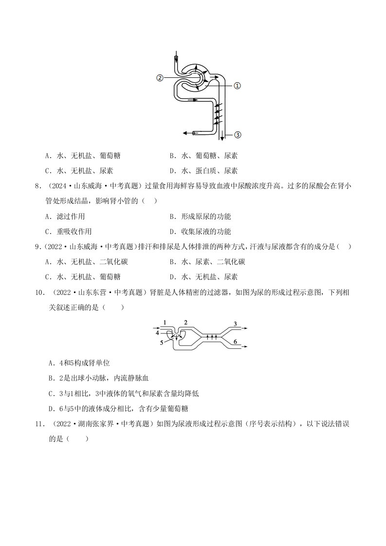 七下冀少生物 第四章 泌尿系统与废物排出(单元卷·考点卷)(2大考点)(含答案)QXSWJS-0156
