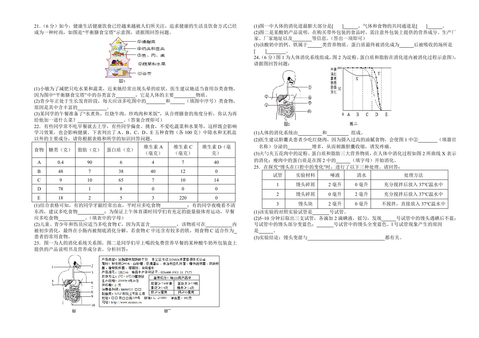 冀少版生物七年级下册复习作业(第一章)QXSWJS-0111