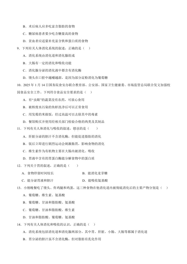 > 七下生物冀少第一章 消化系统与营养摄取 (章末复习综合测试卷)(含答案)QXSWJS-0114
