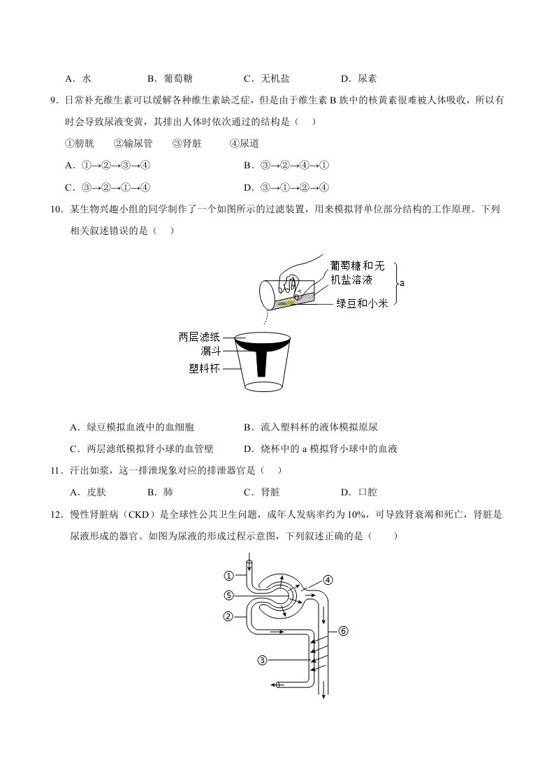 七下冀少生物 第四章 泌尿系统与废物排出(单元卷·测试卷)(含答案)QXSWJS-0133