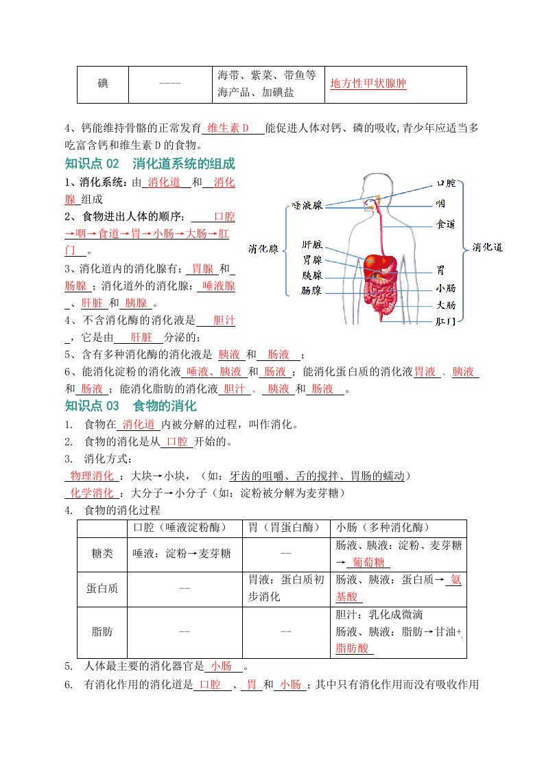 七年级下册生物期末复习知识点汇总(速记版)-(冀少版)QXSWJS-0006
