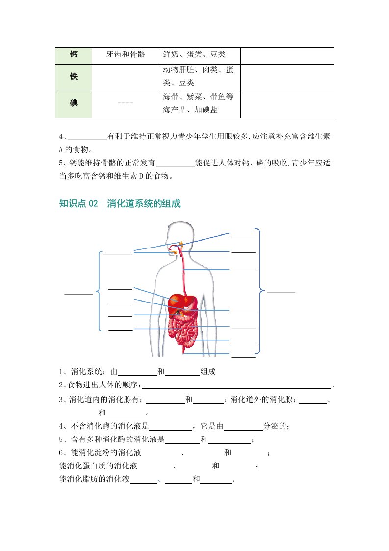 七下生物冀少 第一章 消化系统与营养摄取(知识清单)(含答案)QXSWJS-0039