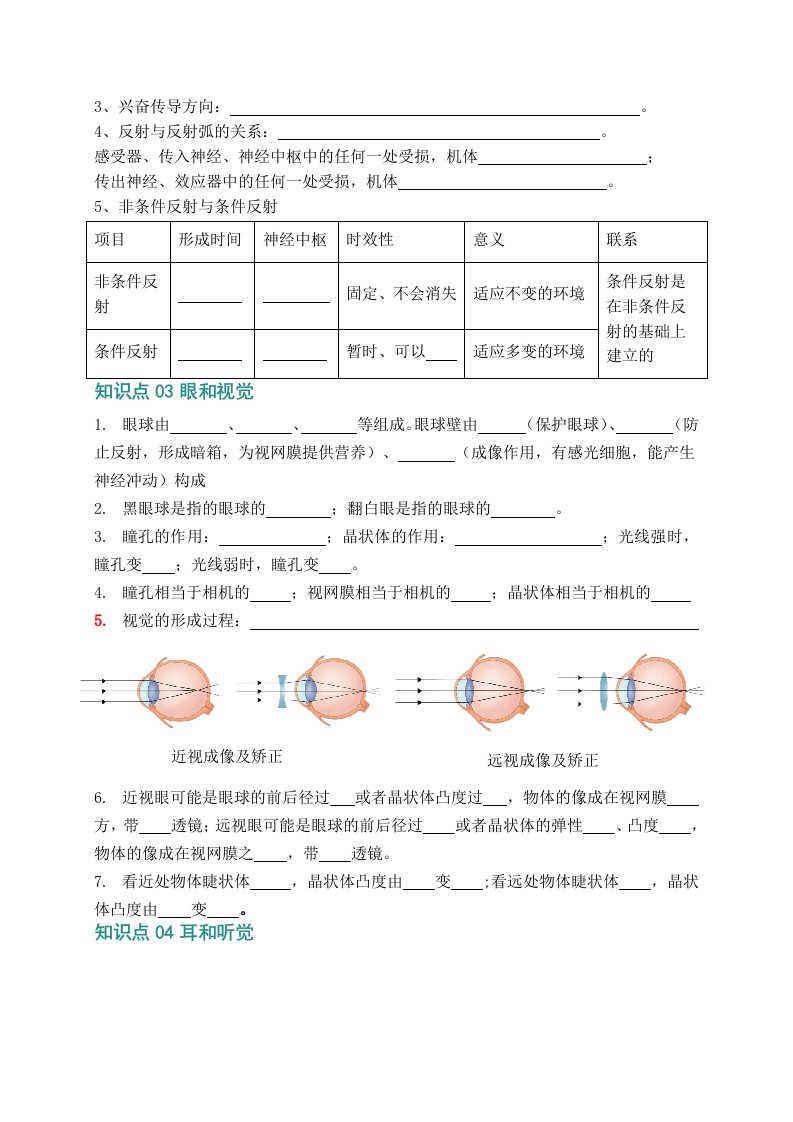 七下生物冀少 第五章 人体生命活动的调节(知识清单)(含答案)QXSWJS-0045