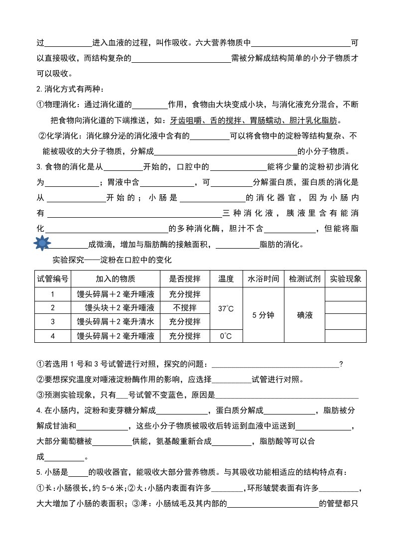 知识点复习填空-新冀少版生物七年级下册QXSWJS-0055