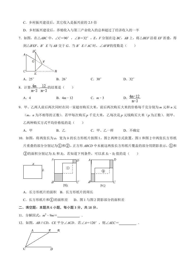 七年级下册数学期末模拟试卷(浙教版)(含答案)QXSXZJ-0290