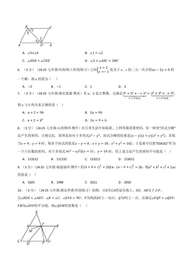 七年级(下)月考数学试卷(5月份)(培优卷)(考查范围:第1~4章)(浙教版)(含答案)QXSXZJ-0266