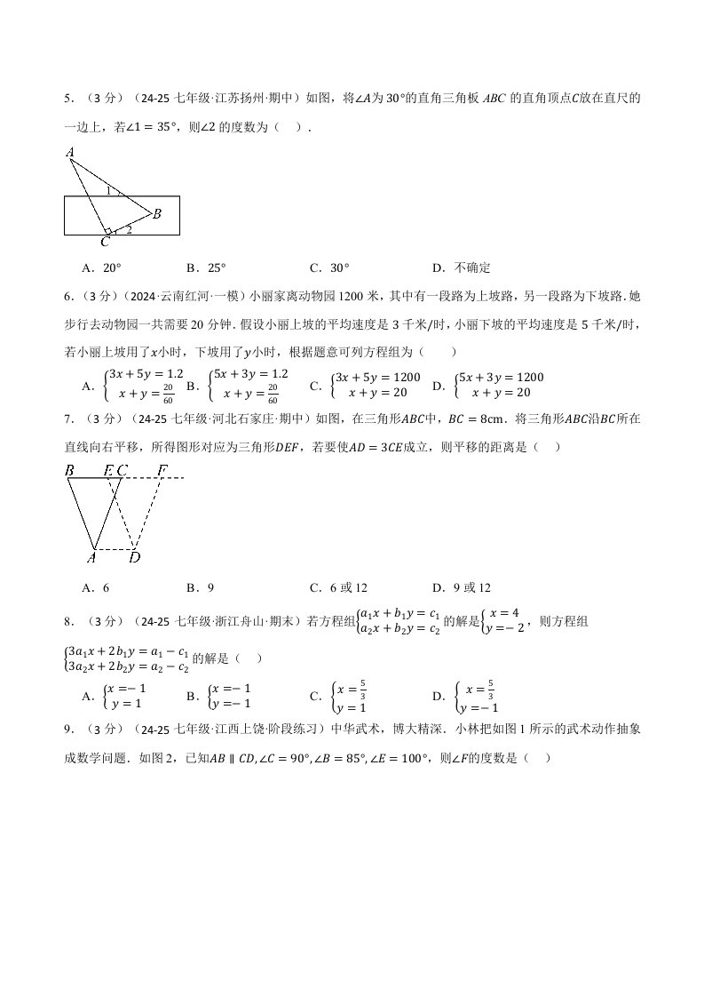 > 七年级(下)第一次月考数学试卷(3月份)(培优卷)(考查范围:第1~2章)(浙教版)(含答案)QXSXZJ-0261