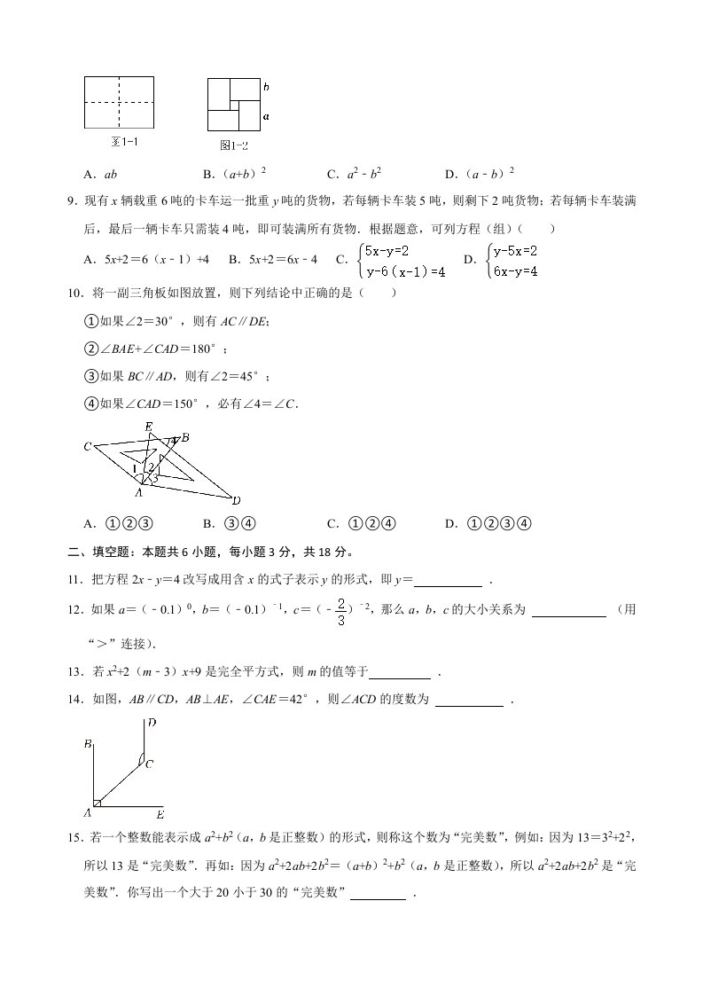 七年级下册数学期中模拟试卷(浙教版)(含答案)QXSXZJ-0271