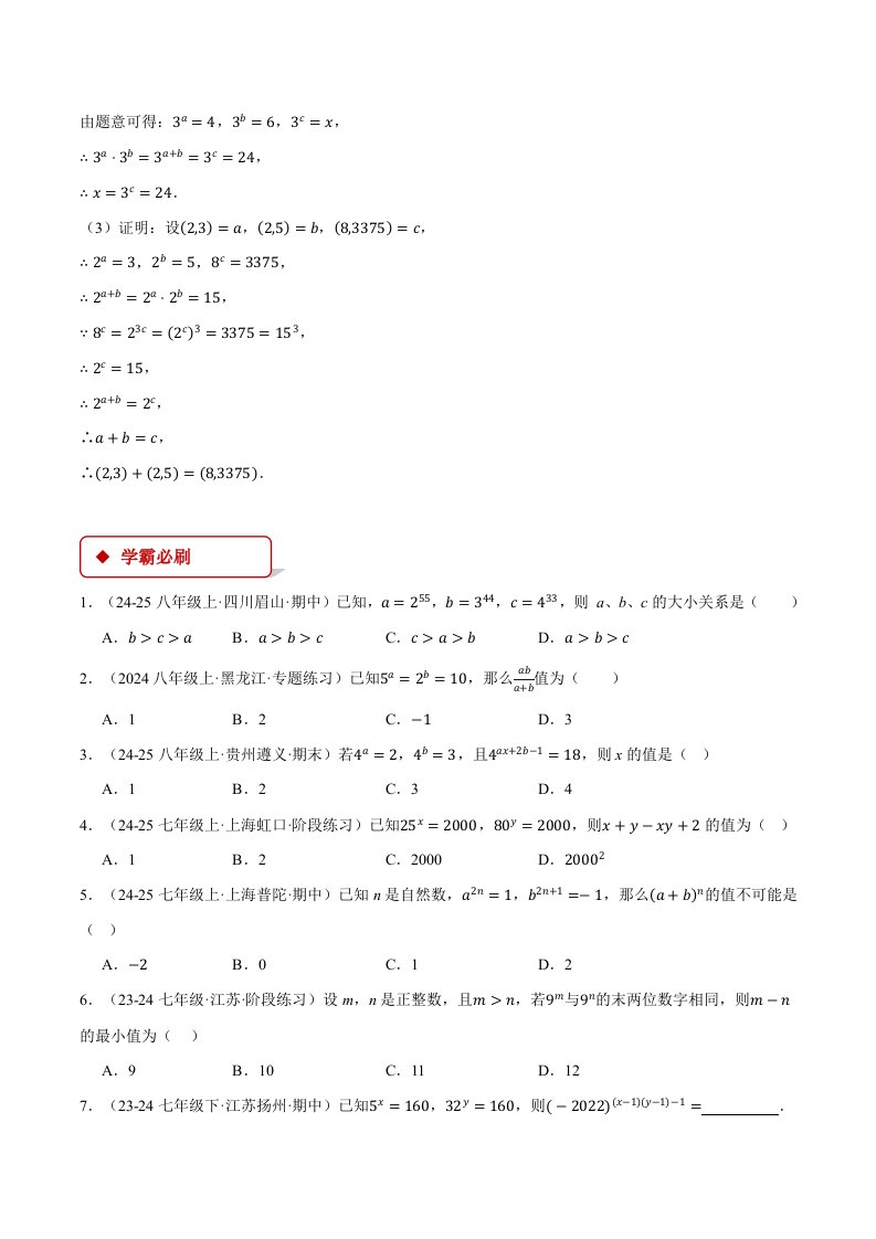> 七下数学 专题3.1 幂的运算(压轴题专项讲练)(浙教版)(含答案)QXSXZJ-0240