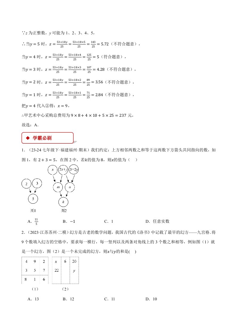> 七下数学 专题2.3 解三元一次方程组及应用(压轴题专项讲练)(浙教版)(含答案)QXSXZJ-0236