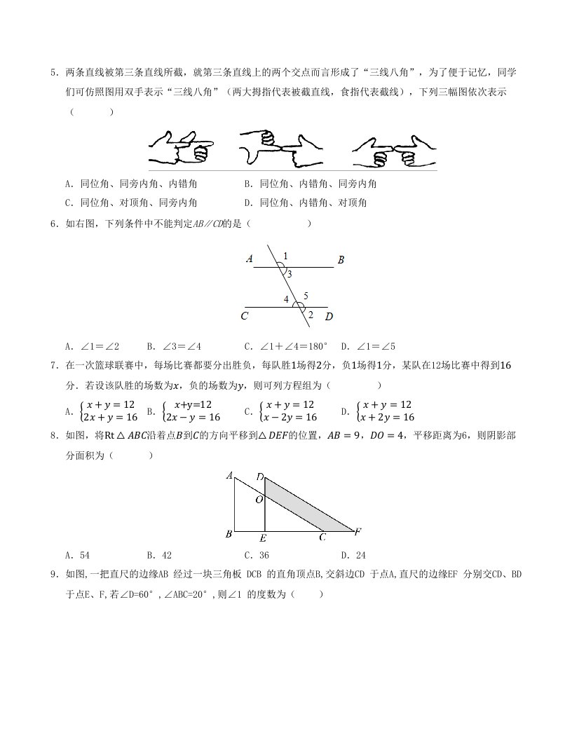 七年级数学下学期第一次月考模拟测试卷(浙教版)(含答案)QXSXZJ-0259