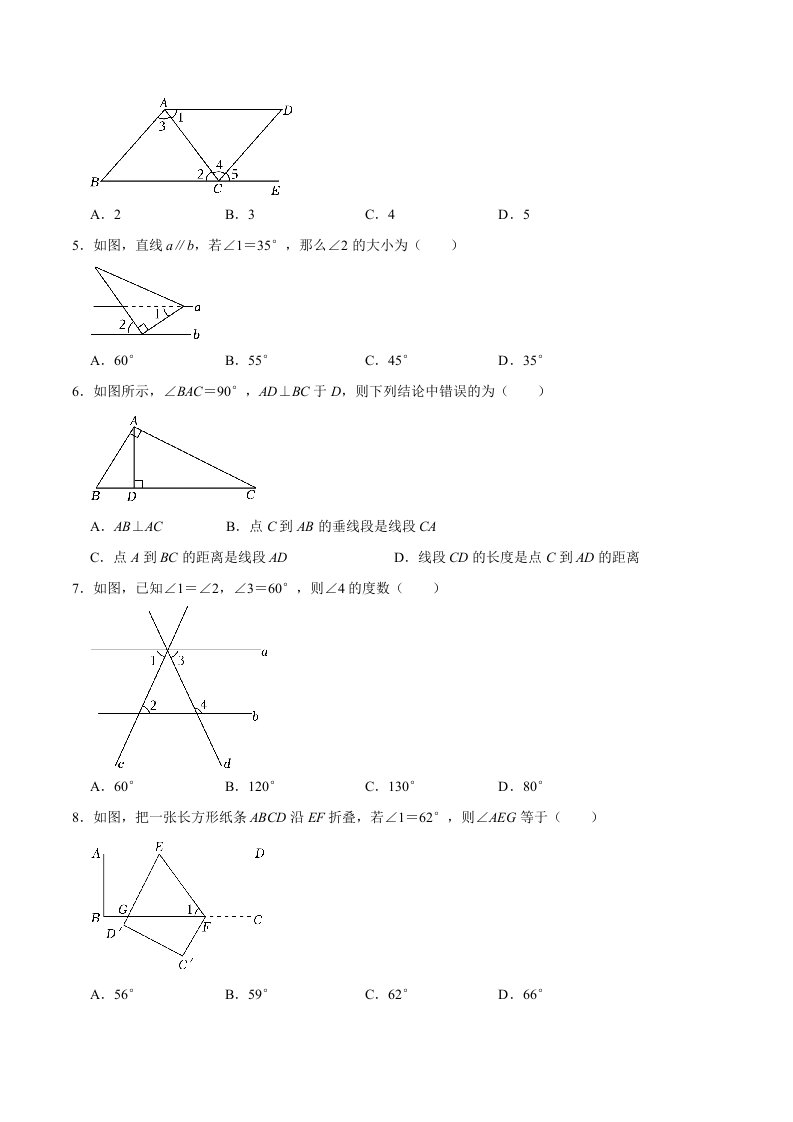 七下数学 第1章 相交线与平行线 单元检测(A卷·夯实基础)-(浙教版)(含答案)QXSXZJ-0032