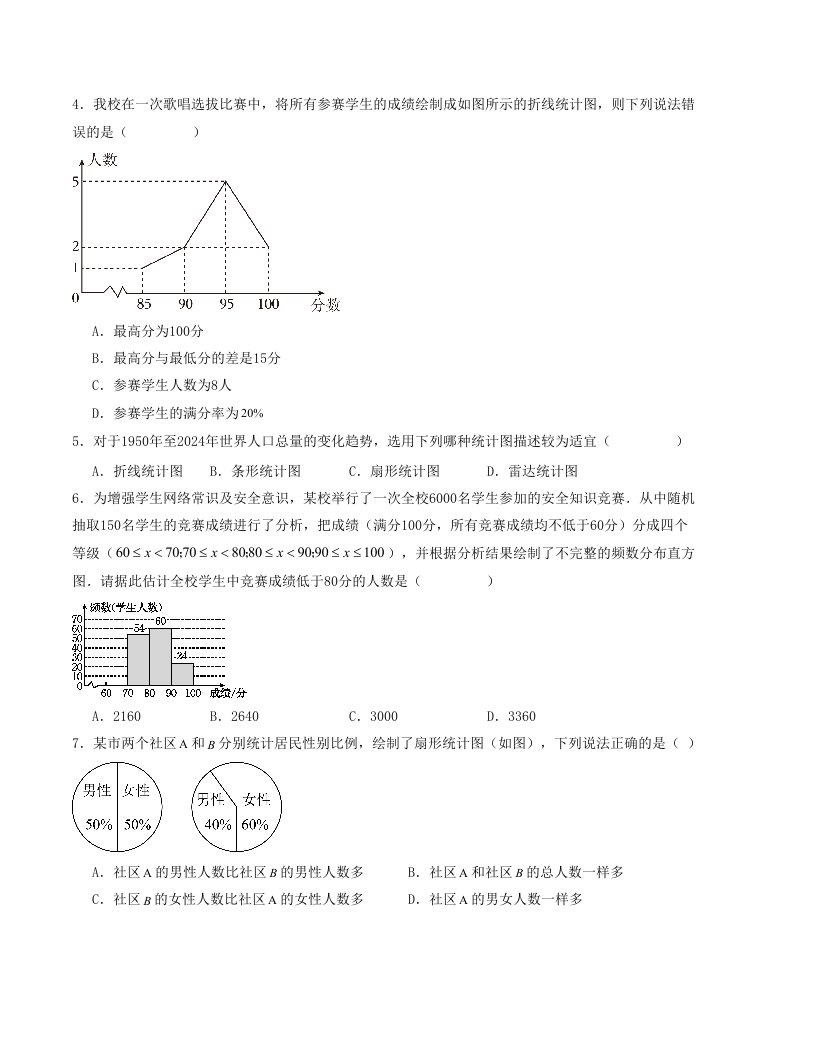 七下数学 第6章 数据与统计图表 单元测试(含答案)-(浙教版2024新教材)QXSXZJ-0029