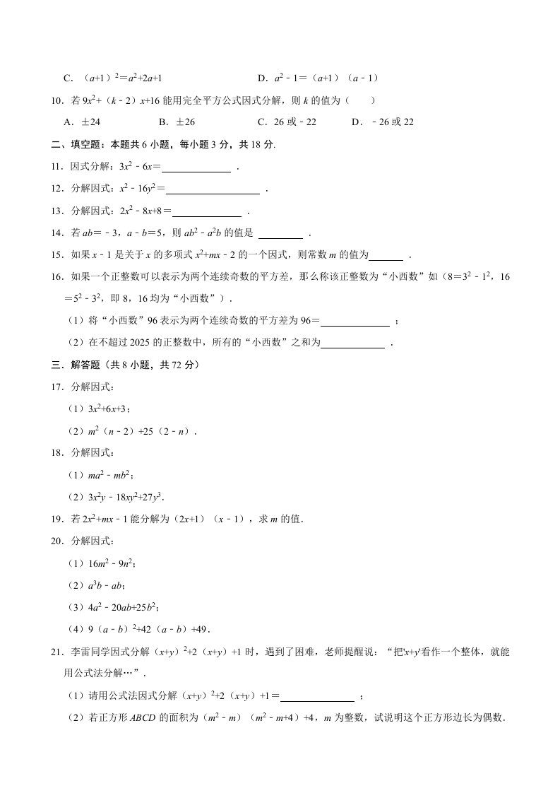 七下数学 第4章 因式分解 单元检测(A卷·夯实基础)-(浙教版)(含答案)QXSXZJ-0038