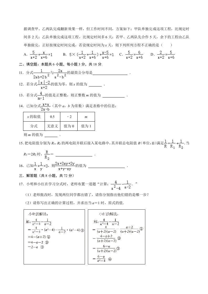 > 七下数学 第5章 分式 单元检测(A卷·夯实基础)-(浙教版)(含答案)QXSXZJ-0040
