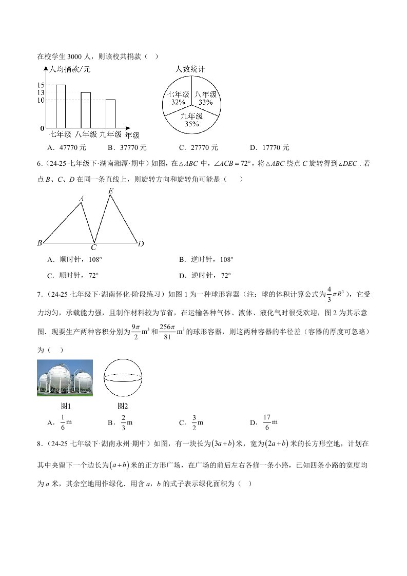 期末押题重难点检测卷(培优卷)(考试范围:七下全部内容)-(湘教版)(含答案)QXSXXJ-0240