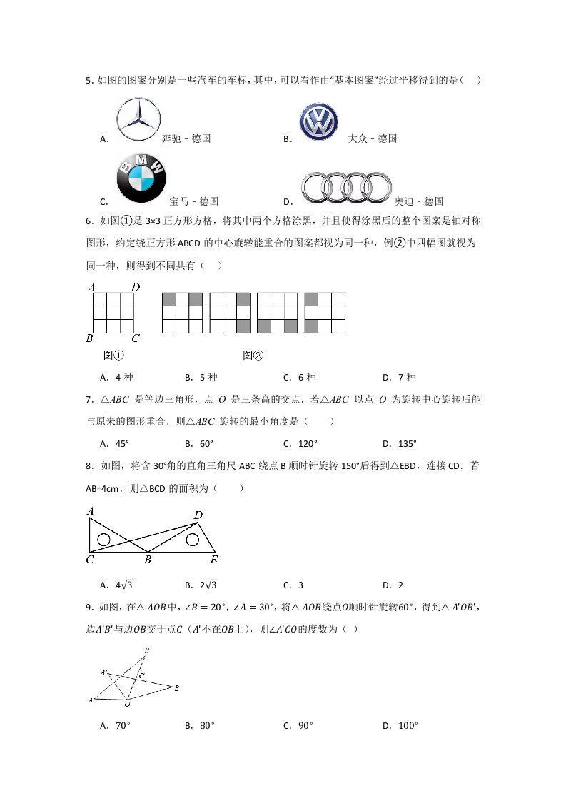 七下数学湘教 第5章 轴对称与旋转 单元测试卷(含答案)QXSXXJ-0077