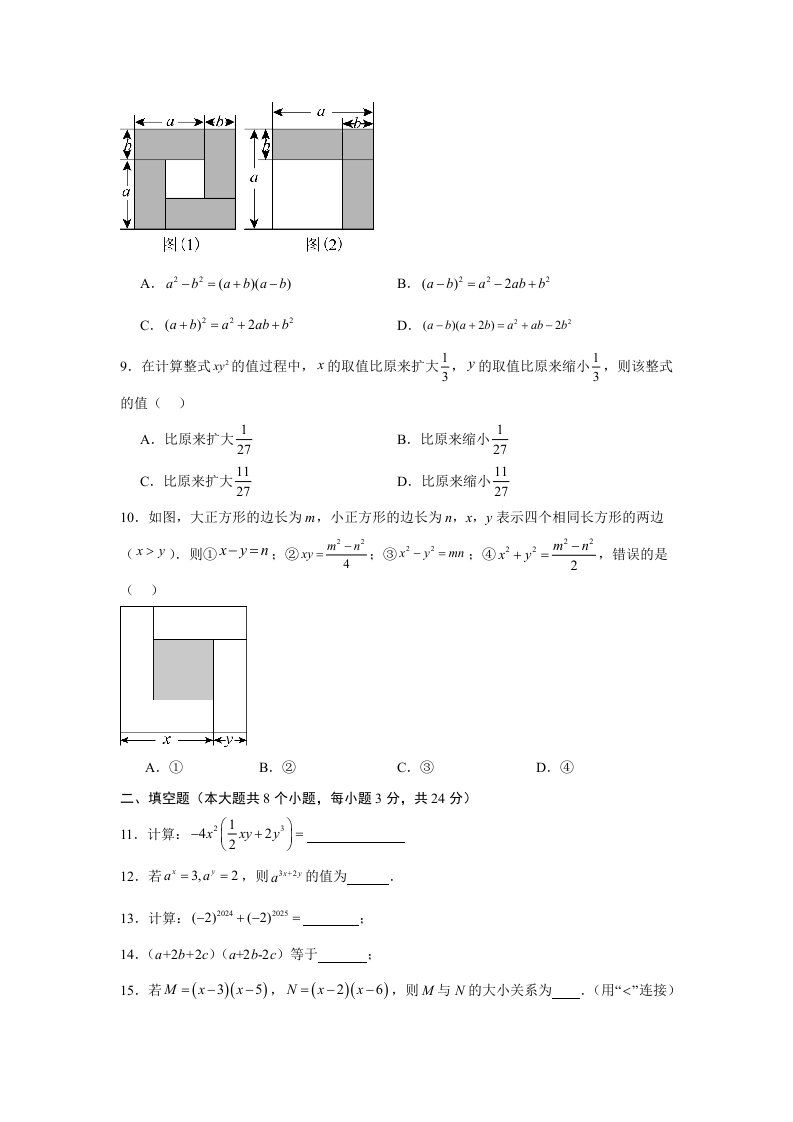 七下数学 第1章 整式的乘法(单元测试,湘教版)(含答案)QXSXXJ-0082