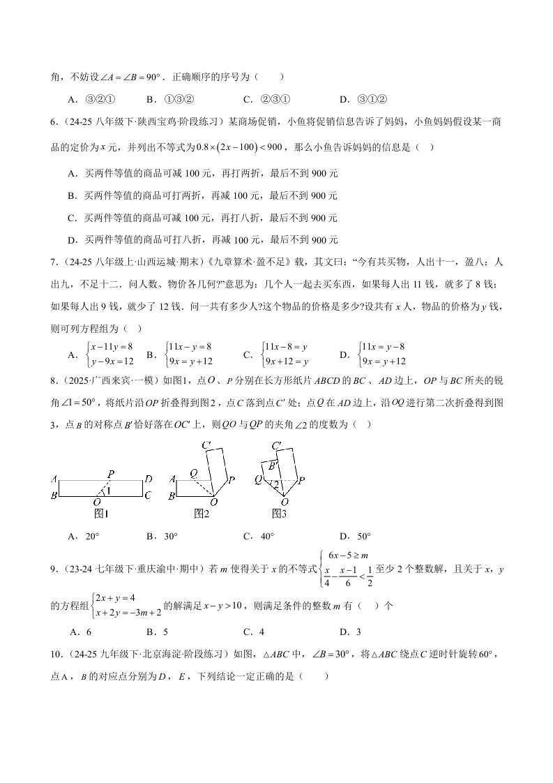 > 七下数学期末押题卷(苏科版)(含答案)QXSXSK-0210