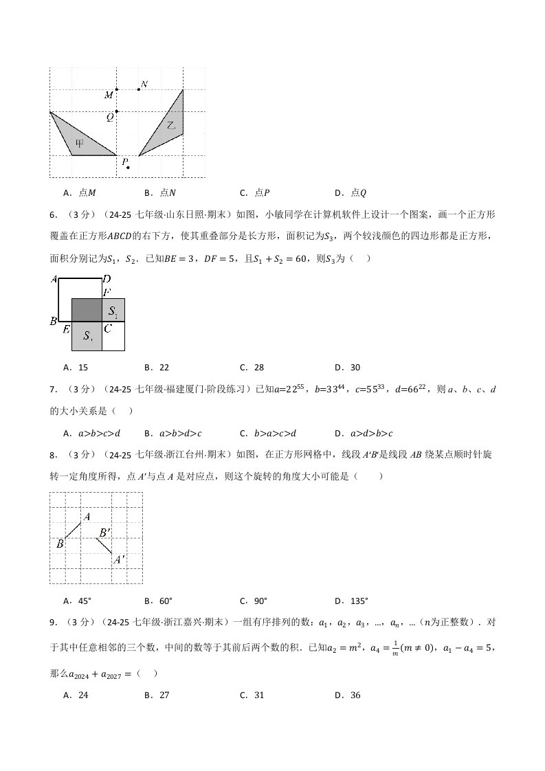 七年级(下)期中数学试卷(考查范围:第7~9章)(苏科版)(含答案)QXSXSK-0201