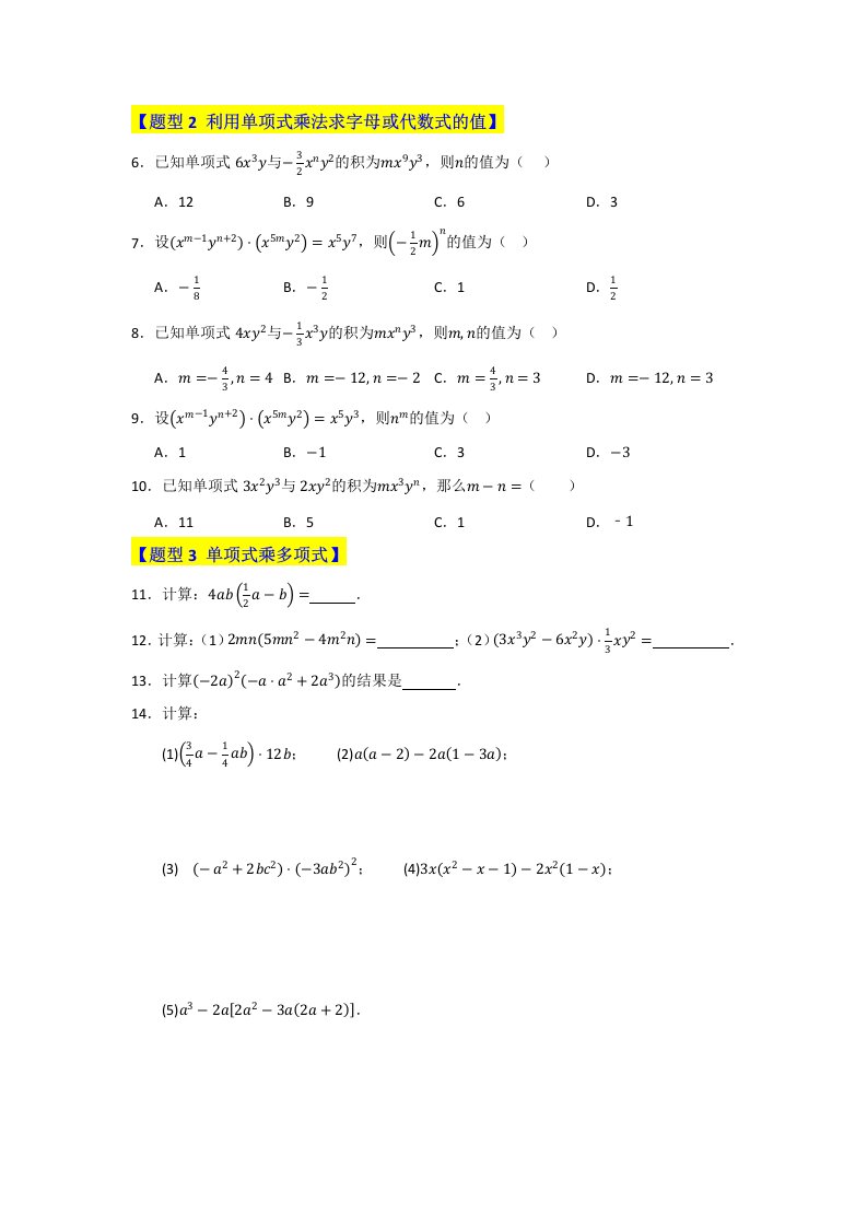 > 七下数学苏科 专题02 整式乘除法重难点题型归纳(十大类型)(含答案)QXSXSK-0139