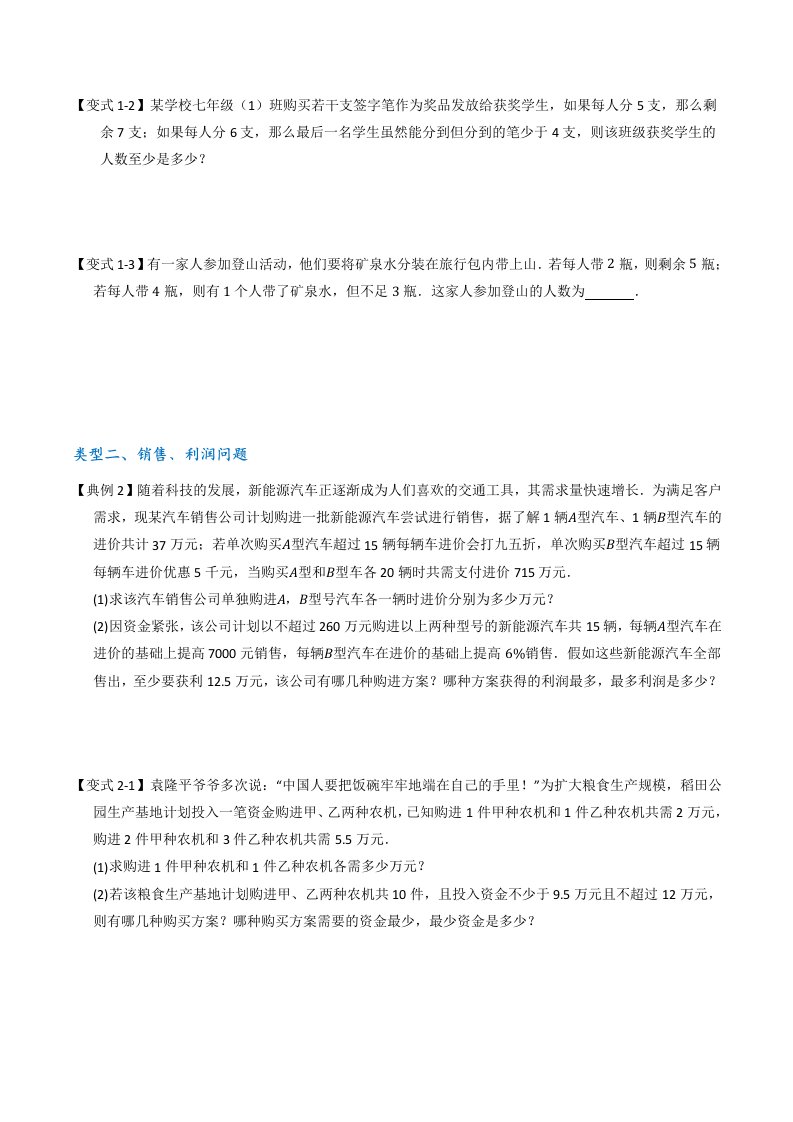 七下数学苏科 专题07 不等式(组)中含参数压轴汇编(五大类型)(含答案)QXSXSK-0164