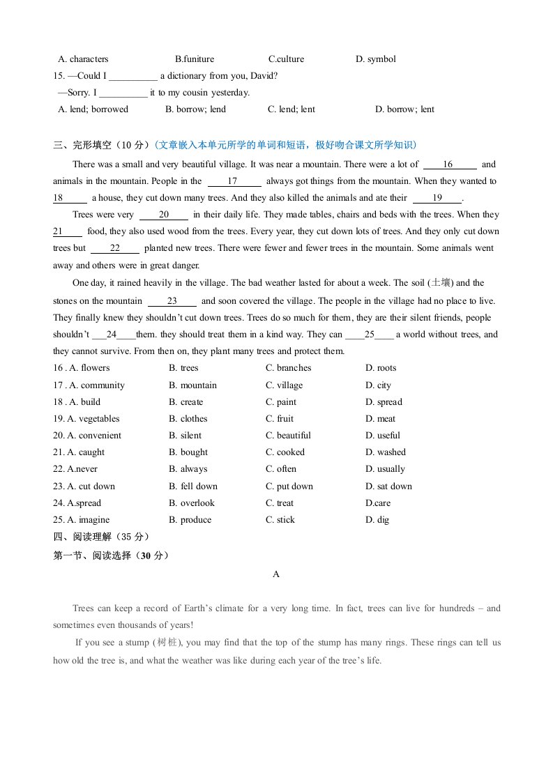 > 七下英语 Unit 3 单元检测(含答案)(沪教牛津)QXYYHJ-0215