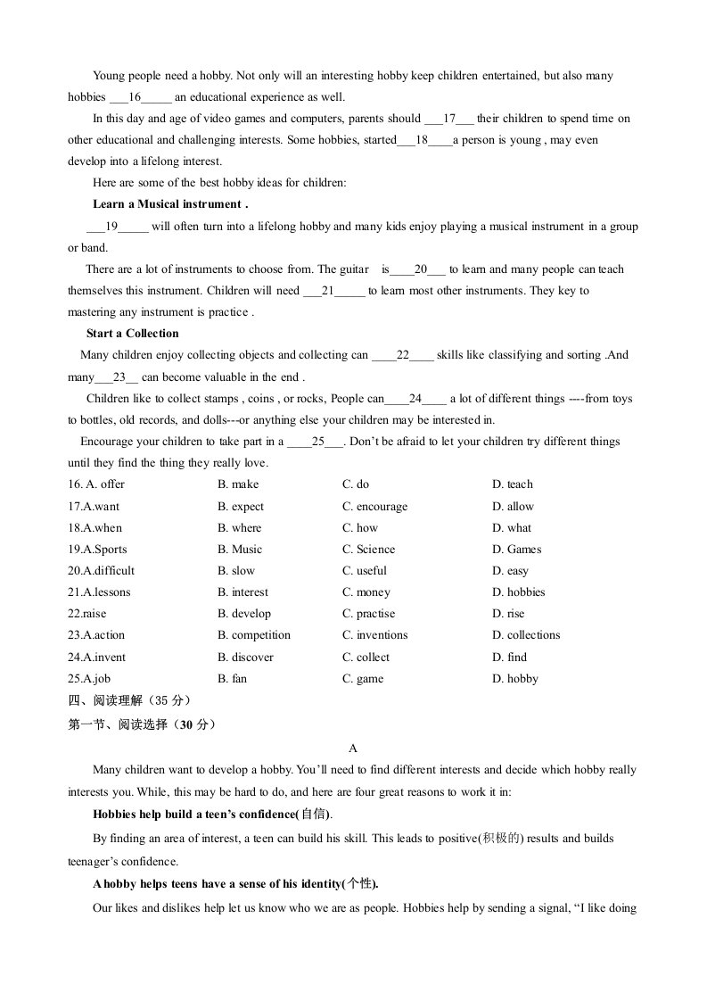 七下英语 Unit 8 单元检测(含答案)(沪教牛津)QXYYHJ-0227