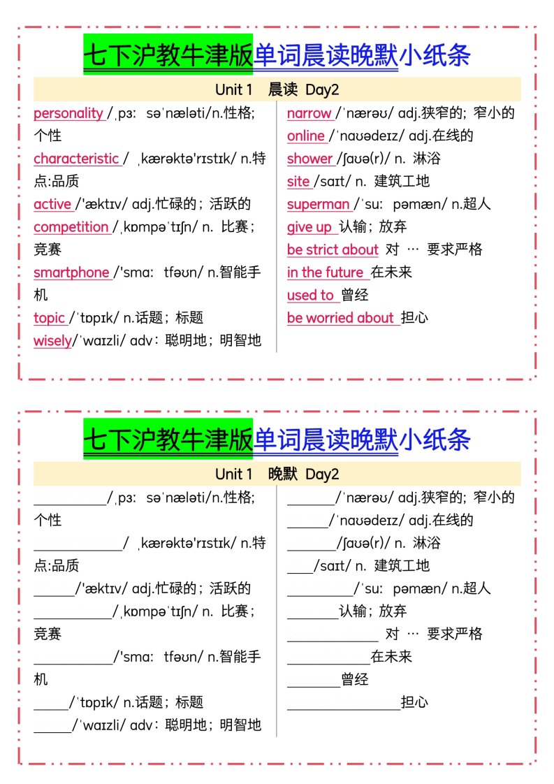 > 07-新七下英语沪教牛津版单词晨读晚默QXYYHJ-0092