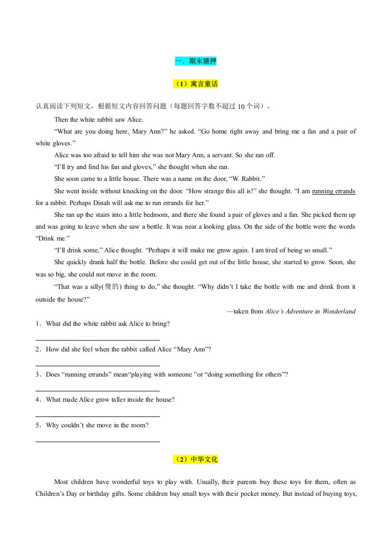 > 七下英语 译林 专题08 阅读表达 (期末必刷18篇)(含答案)QXYYYL-0524
