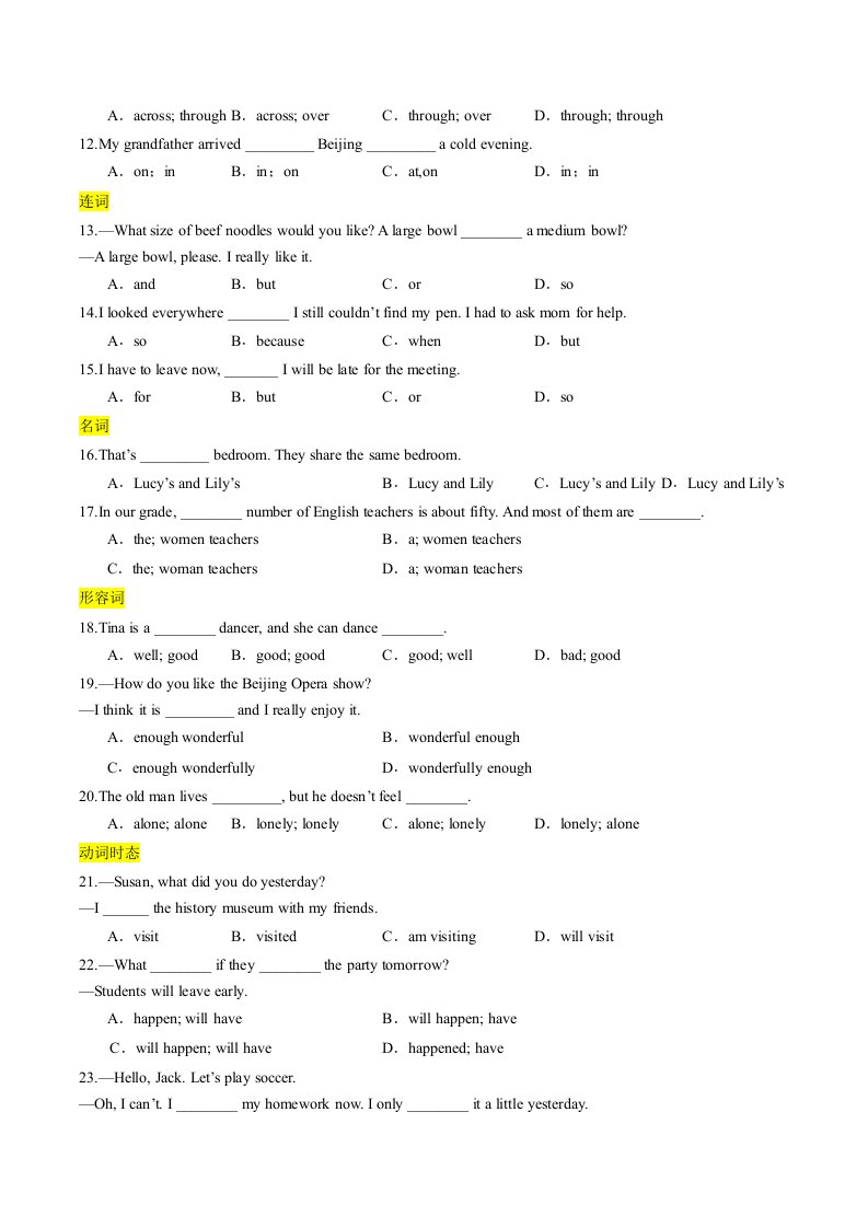 > 七下英语 译林 专题01 单项选择 (期末必刷130题)(含答案)QXYYYL-0510