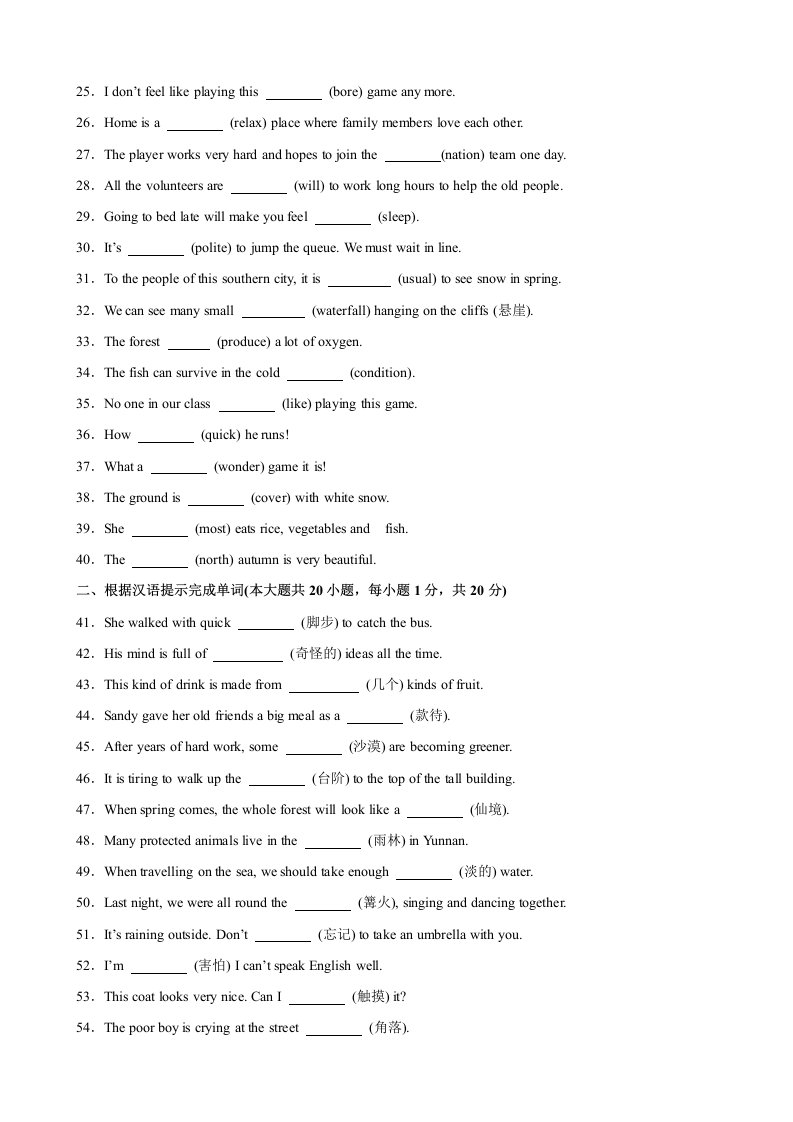 > 七下英语 5月第三次月考复习之重点单词变形短语语法句型练习(Units 5-6)(译林版)(含答案)QXYYYL-0433